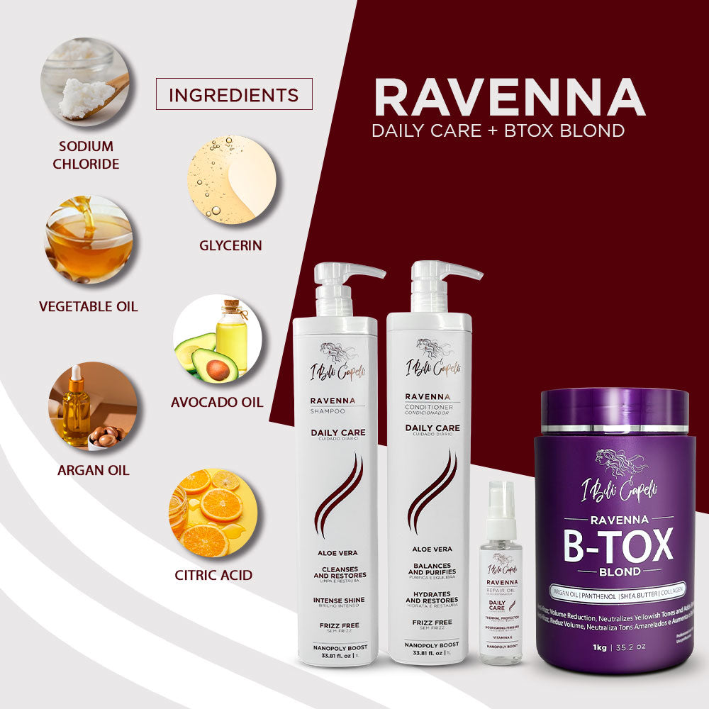Kit Ravenna Daily Care + B-tox Blond : Hydration, Straightening, and Intense Shine