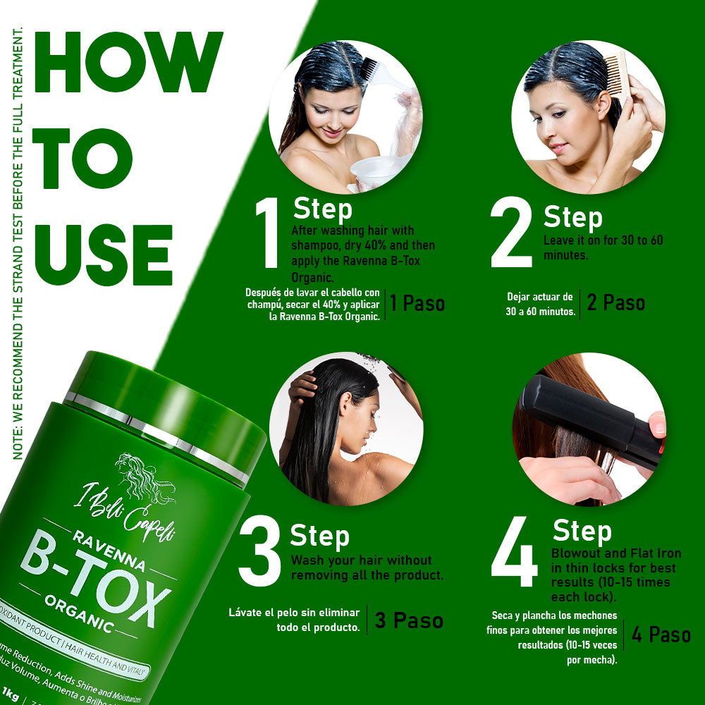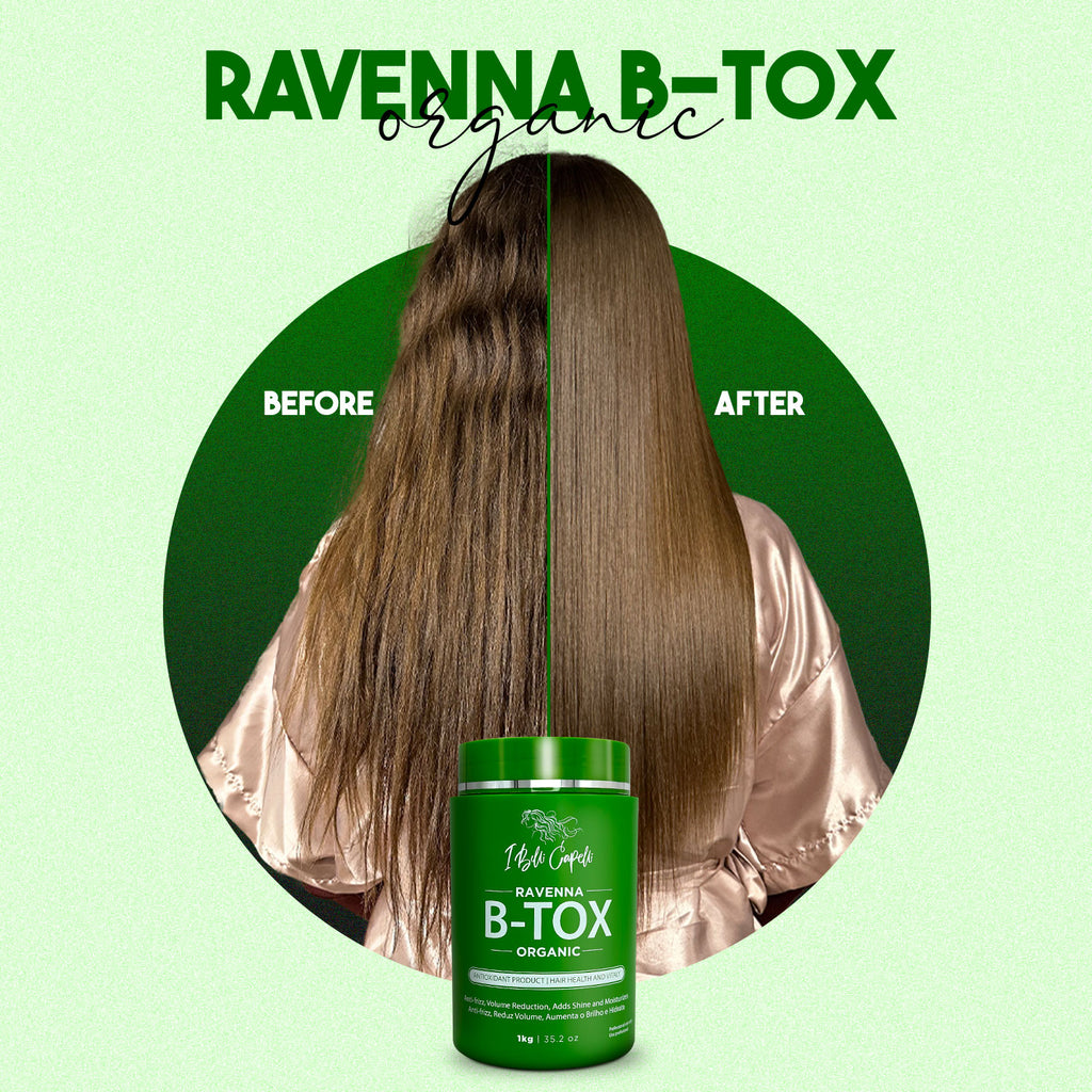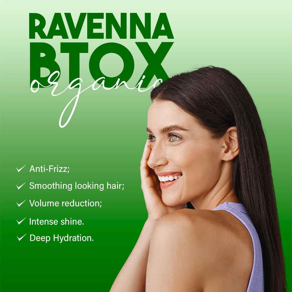 Ravenna B-tox Organic was developed with the exclusive Keratin and Panthenol, it is an antioxidant product that treats the health of the hair, leaving it with lots of shine and no frizz.